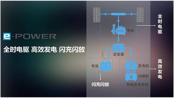 先是用日产的聆风上那套三电系统,配上一块快充快放小电池,再把原有的HR16系列1.6L发动机砍掉一个缸,组成了一个基础版的增程系统,用在了轩逸上,这就是最早的e-Power。
